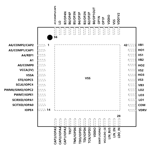 六路NMOS Pre-Driver+4TCON+3CAP+QEP+延時(shí)濾波+運(yùn)算加速單元(除法+開(kāi)方+反正切+帕克變換+32位乘法移位