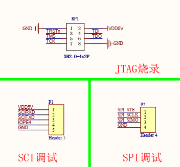 當(dāng)需要離線(xiàn)燒錄程序時(shí),通過(guò)5V、TX、RX、IOPE4、GND信號(hào)測(cè)試焊盤(pán),借助進(jìn)芯的離線(xiàn)燒錄工具可實(shí)現(xiàn)快速的脫機(jī)燒錄。