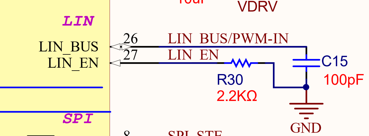 芯片內(nèi)部集成LIN芯片,內(nèi)部兼容識(shí)別PWM,可以通過(guò)輸入PWM/LIN進(jìn)行通訊調(diào)速和反饋故障。使能LIN_EN引腳,來(lái)實(shí)現(xiàn)打開(kāi)關(guān)閉LIN通訊。