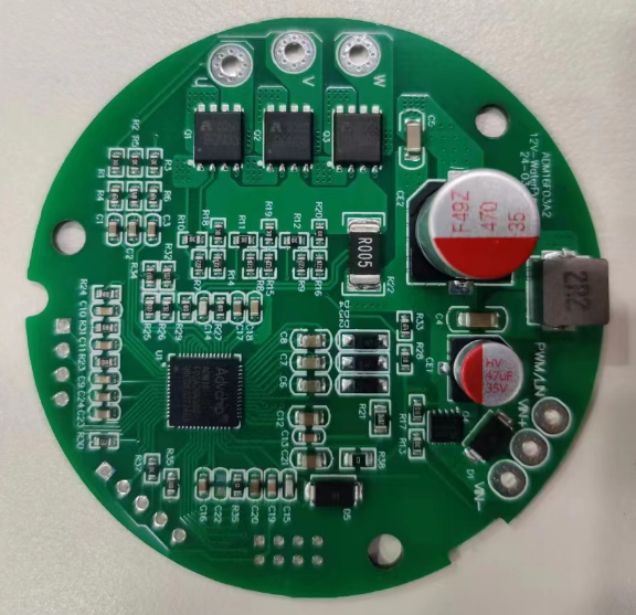 采用單電阻弦波,電路簡(jiǎn)單,成本低。無(wú)感FOC,功率閉環(huán)、速度閉環(huán)。各項(xiàng)保護(hù)齊全(過(guò)欠壓、過(guò)流、堵轉(zhuǎn)、缺相、功率)等特點(diǎn)。
