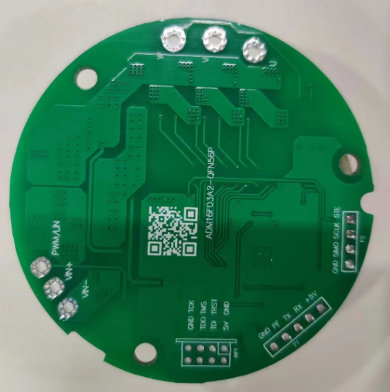 電路模塊主要包括: 輸入防反母線(xiàn)電容輸入部分、ADM16F03A2最小系統(tǒng)、功率橋電路、ADC母線(xiàn)采樣電路、單電阻采樣運(yùn)放采樣電路、自舉電路和PWM/LIN通訊反饋電路。