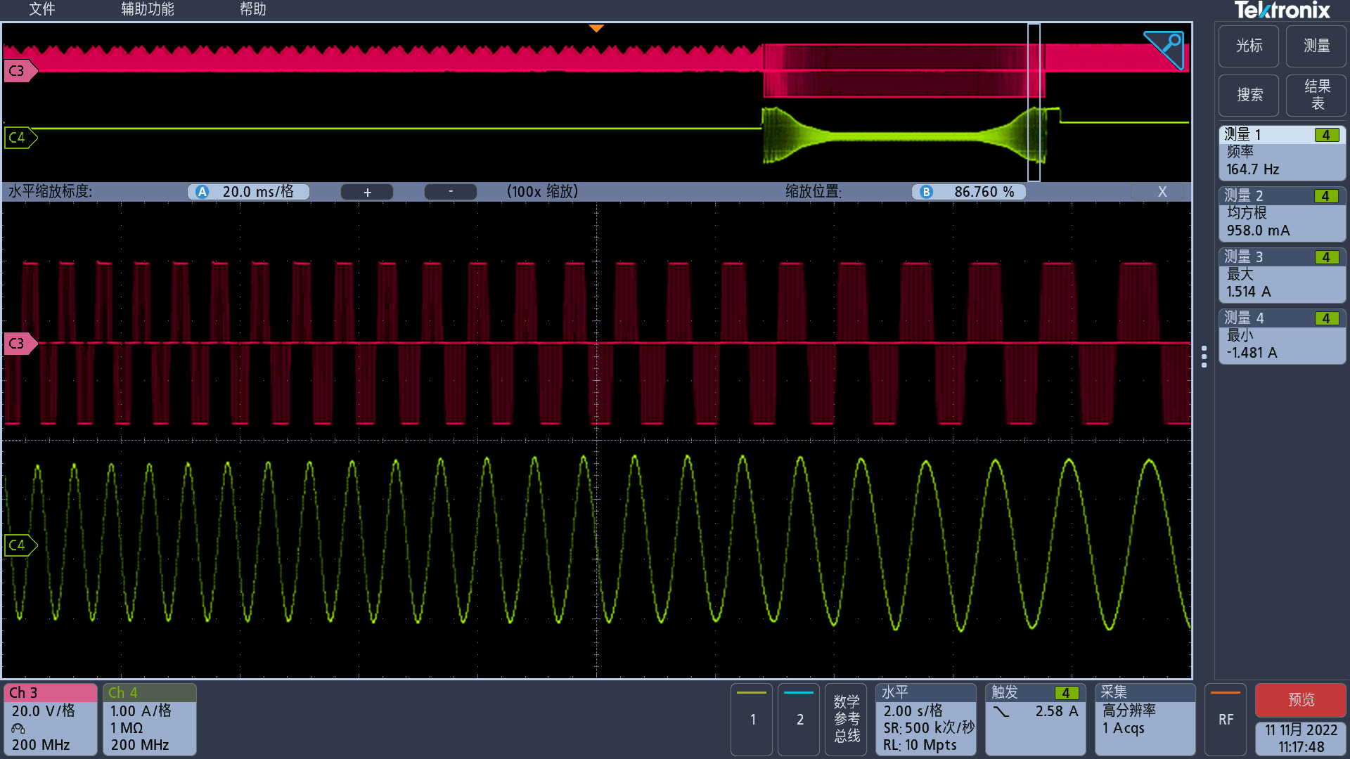 基于以上應(yīng)用介紹,我司設(shè)計(jì)了一塊用于驅(qū)動(dòng)12V兩相四線步進(jìn)電機(jī)的電子水閥的控制DEMO板。板卡實(shí)物圖和實(shí)測波形圖如下圖所示:
