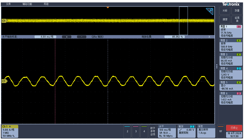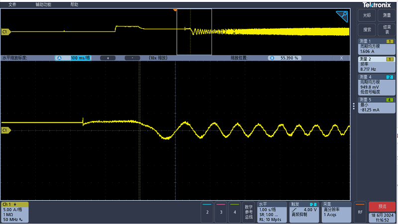 基于以上設(shè)計思路,我司已推出板級方案,以下為產(chǎn)品運(yùn)行時電流波形。
