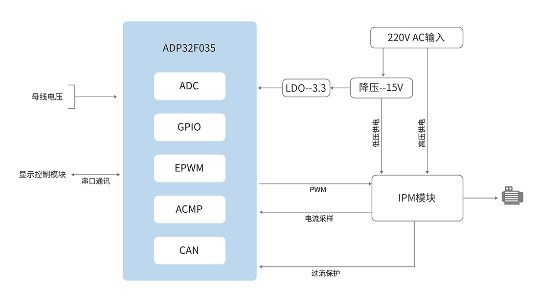 該方案無感FOC變頻控制,速度穩(wěn)定精度高,低速大力矩,高速轉(zhuǎn)速高可破壁。